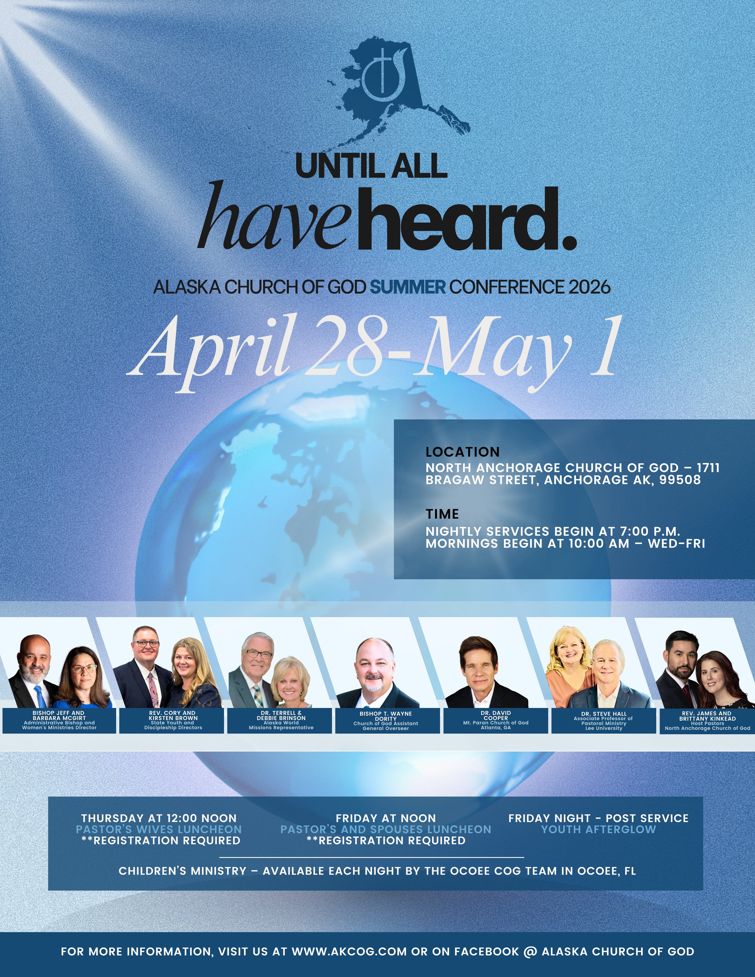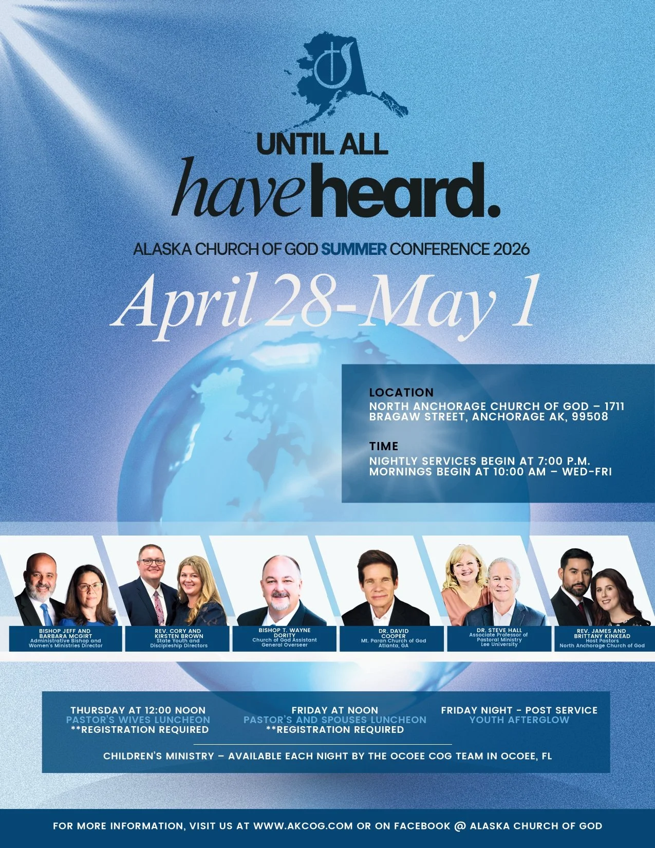 Our region is one of the most beautiful places in the world. Wherever you place your feet, you will experience the mighty and majestic handy work of God. The only thing more beautiful than our skylines, mountains, wildlife, oceans, rivers and streams are the people that live here. The Church of God is alive and well in Alaska. We are a committed community of people whose lives have been changed by God's grace and truth. As you navigate our website, our prayer is that you will be both informed and inspired by our loving and powerful Creator.